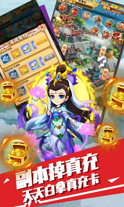 仙魔卡牌手游巨作,炫目的技能与多样的伙伴组合,开启策略回合制战斗新时代!以独具东方神韵的时尚画风,重现西游背景人物,体验降魔除妖之路,上线豪礼多多,私人定制称号,上阵卡牌全加成,无门槛送神卡,福利游戏不花钱 ,副本掉真充,天天白拿真充卡,白拿元宝,核心道具随心买买买,首充双倍元宝,还在等什么呢?快行动起来吧!