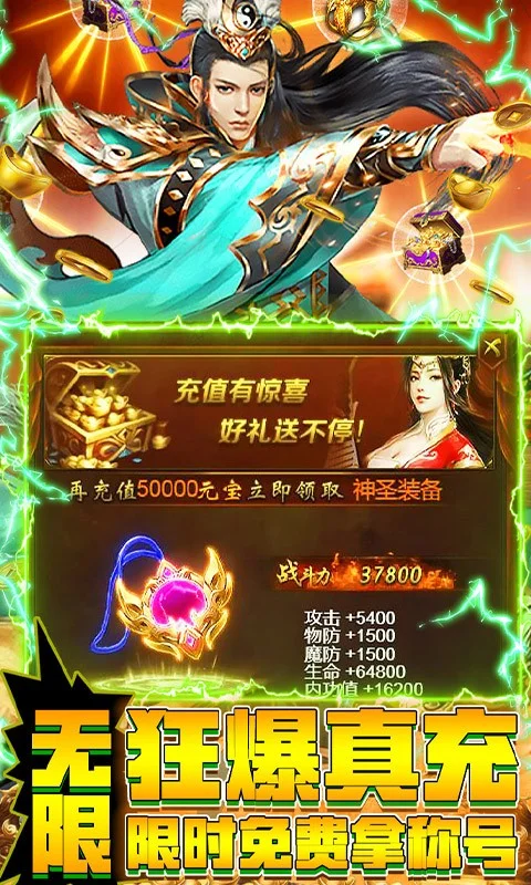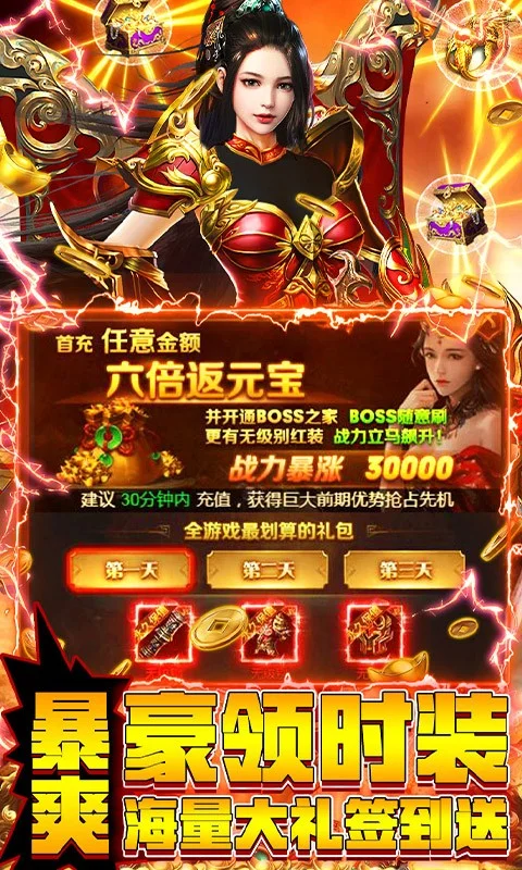 本游戏为经典挂机刷BOSS三角色传奇,通过主线、副本、BOSS掉落获取各类资源培养游戏角色,更有强力护法与玩家共同战斗与成长。主线为自动刷图手动推图,前期主要玩法是BOSS争夺、PVE副本、行会争霸,后期为跨服竞技决出王者。游戏内回收装备得元宝,一夜暴富不是梦,进游戏激活终身返利,每天都送代金券,人人保送VIP。