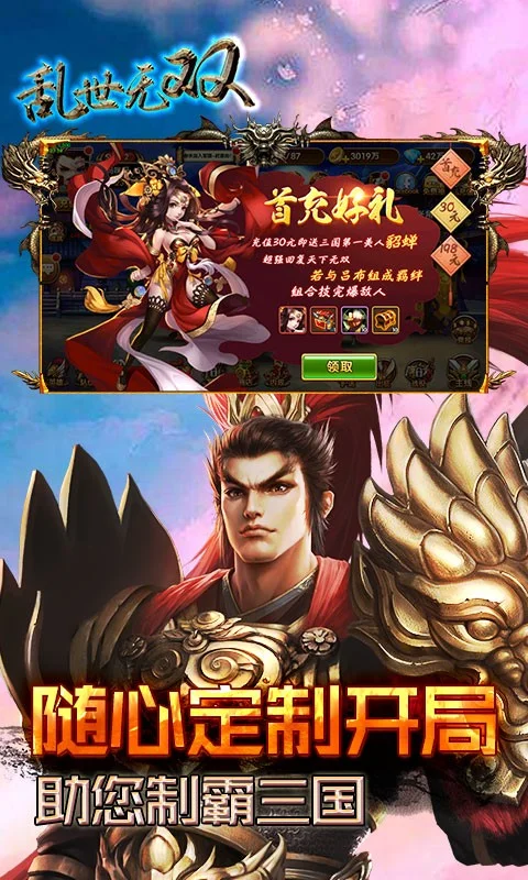 这是一款三国题材的3D动作卡牌游戏,神品武将降临,再掀起三国大战!,炫酷逼真的真实三国名将,独具特色的三消奥义战斗,紧张刺激的跨服竞技对战,群雄争霸国战!完美还原历史真实三国时代,你将作为一代主公,招募精兵强将,打造专属装备,五虎上将、五子良将任你调遣,更有兄弟好友助阵战斗。称霸乱世三国,只待主公归位。