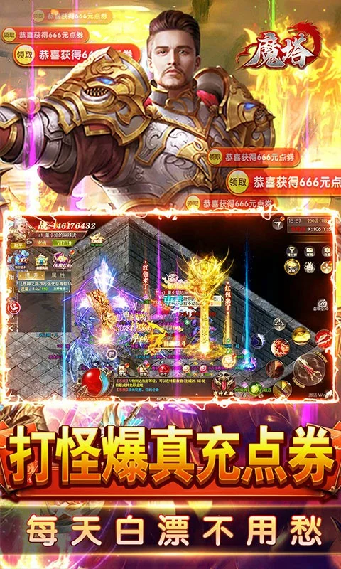 魔塔是一款魔幻风格的传奇游戏,精美的画面,多人激情PK,特殊跨服战场。超高的BOSS爆率以及多种的系统玩法。多种转职!满级VIP随便漂,每次漂到的VIP等级还可以获得专属礼包和特戒