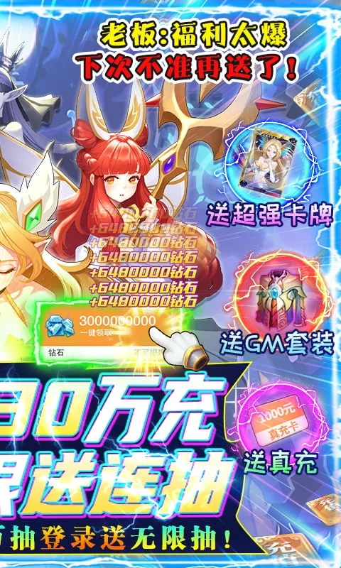 《天命起源-送GM30万充》是一款休闲护肝的放置类卡牌手游,全新GM免费直充工具5秒点充值,无限点充648!首充!累充!VIP!全部免费激活!超爆福利,等你来玩!