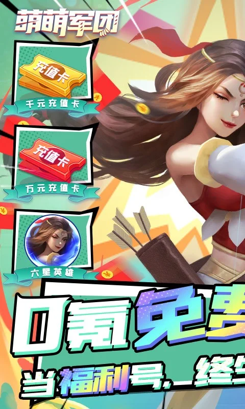《萌萌军团》是一款高品质放置休闲卡牌手游,海量原创英雄,数值平衡畅享公平竞技,阵容搭配体验极致策略。3D立体式moba战场呈现,奇遇洞窟独创roguelike冒险系统,全服逃杀全新的吃鸡玩法,丰富多样的竞技其乐无穷。全新福利版本上线送VIP8,当福利号终生每日领充值卡。万元充值、挂机红包,福利转盘等让你爽到起飞!不肝不氪又好玩,一起加入萌萌大家庭吧!