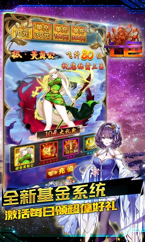 一款以娘化三国为主旋律的创新型卡牌游戏,玩家在游戏内组建属于自己的队伍,带领队伍共同对抗黑暗势力,玩家通过努力登顶巅峰,五虎上将,三国美女尽收麾下,随意搭配,上线福利多多,赠送至尊特权,千万元宝,千万金币,登录即送价值千元真充卡,全新基金活动,一经激活,每日领取豪礼,还在等什么呢?和我一起称霸三国吧!