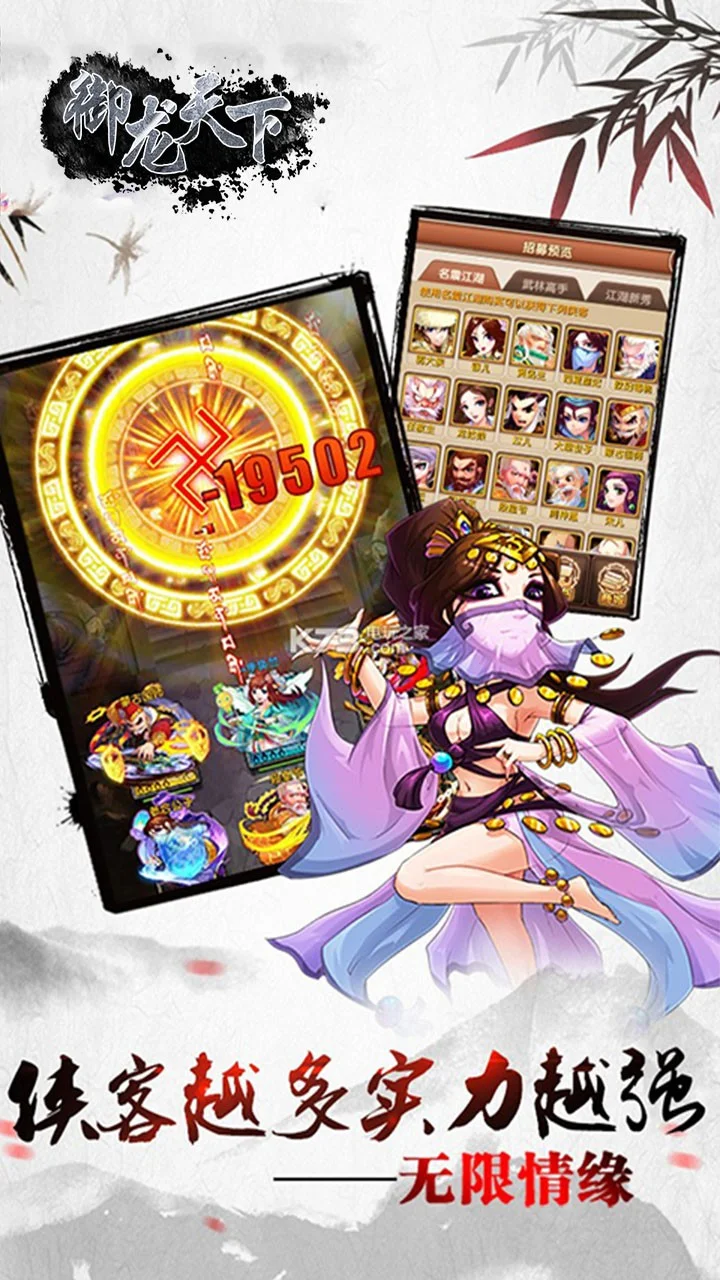 《御龙天下经典火爆》新款武侠为背景的卡牌回合手游,每个侠客都有自己独立的技能,合理的搭配就会对战斗起到事半功倍的作用,爆炸的技能特效让游戏变得不那么枯燥,进阶的角色攻击力更劲爆,游戏还加入的丰富多彩的任务等你体验。