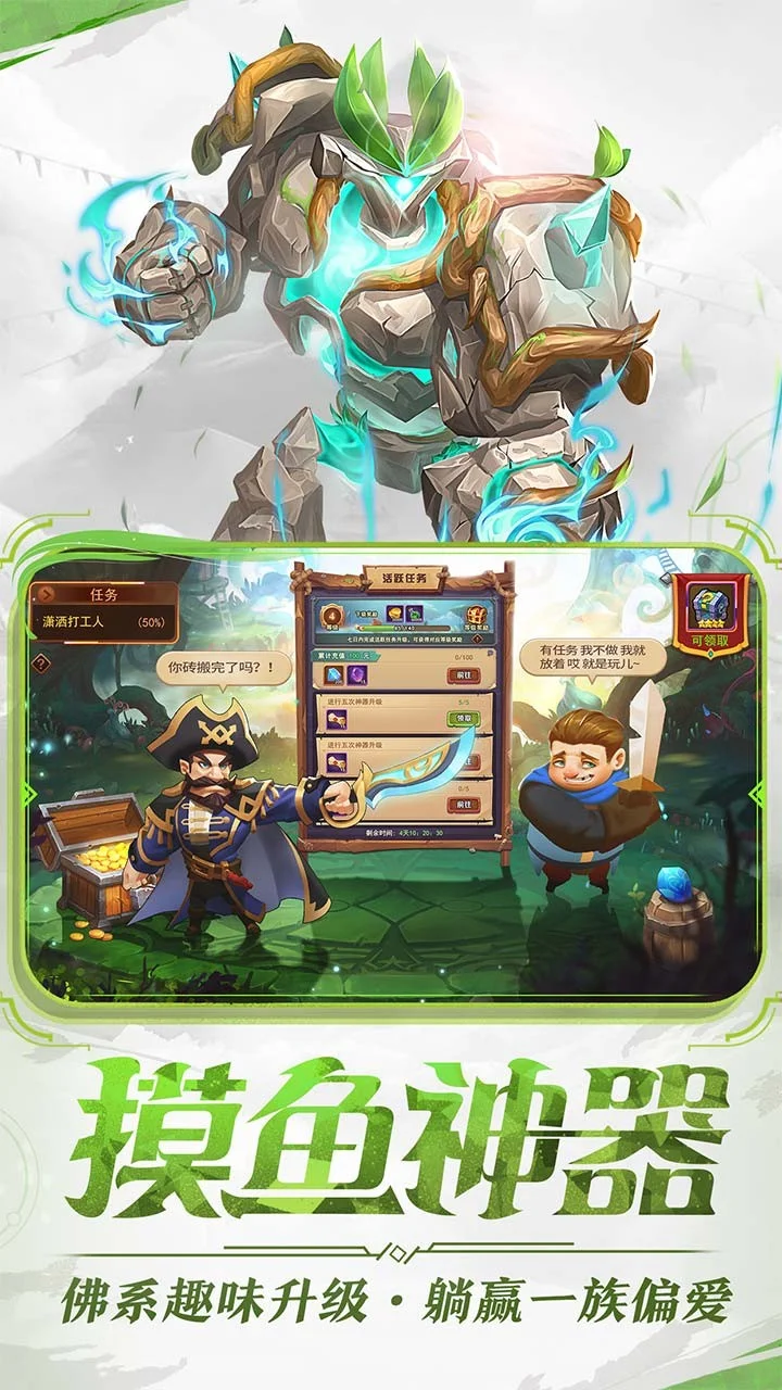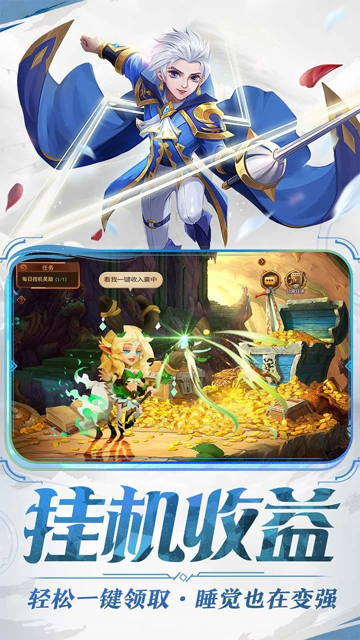 独特西式幻想美术风格,竖版创新操作,给你舒适的游戏体验。游戏内有五大种族,上百位英雄,阵容搭配千变万化,关键在于策略制胜。在策略烧脑的同时,你可随玩随停,佛系护肝养肾,挂机收益让你睡觉也能变更强! 暗夜已至,兵团出击。你,准备好了吗?