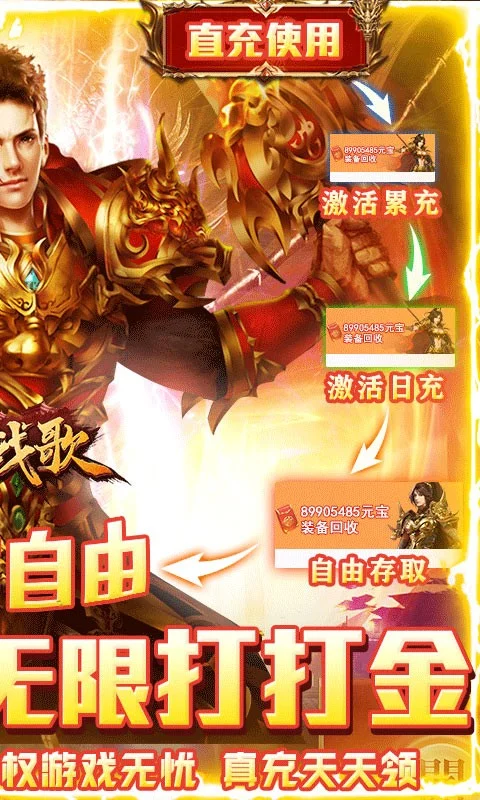 《三界战歌》是一款传承经典玩法的传奇手游,创角就送VIP15、限定时装、限定坐骑,在线再送10000000金币、1000000元宝、极品皓天神印。战法道三位一体,集三职业技能于一身,玩家在战斗中可通过释放居合技自由切换三职业天赋技能,获得英雄幻化卡可以激活相应的英雄幻化,幻化成不同的英雄可以获得不同的合击技能。创意十足的PVP、PVE玩法绝对是玩家关注的焦点。PK强化战斗体验,缔造超爽打击感。每一次战斗都有不一样的刺激体验!沙城争霸、金身魔域、跨服成战等玩法应有尽有。