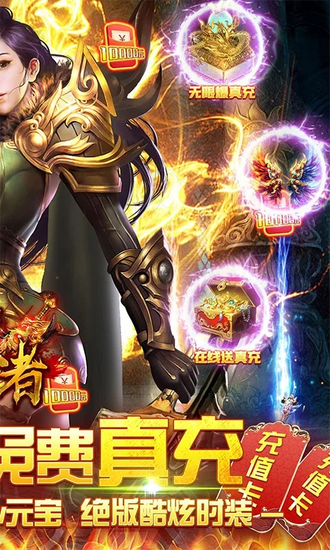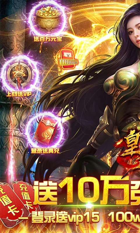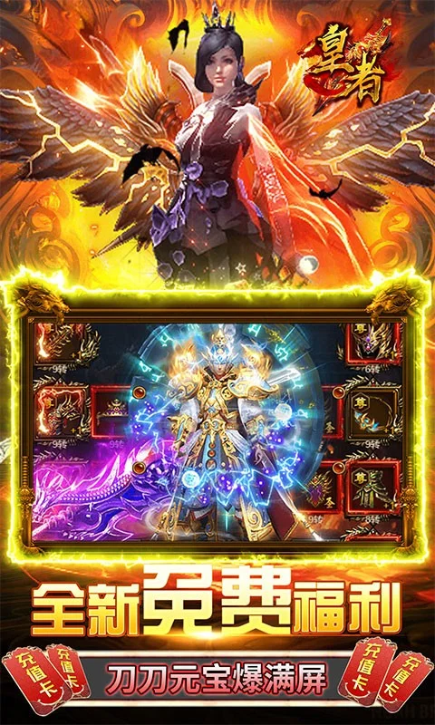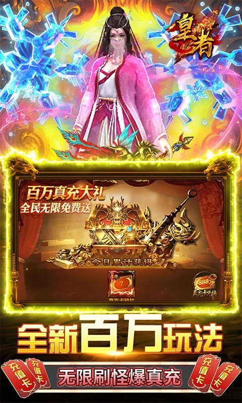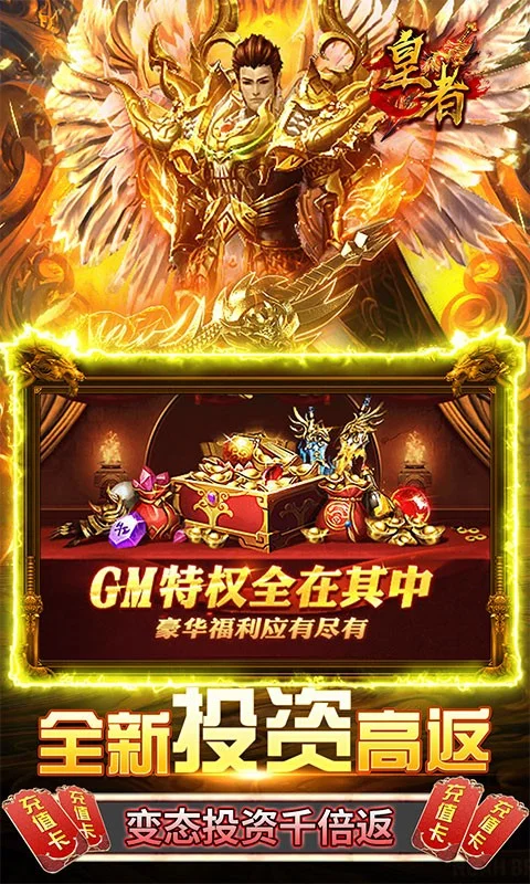 皇者(GM送10w真充)是款还原经典的传奇大型arpg挂机四职业手游! 经典传奇,回味无穷!上线送百万元宝,全图爆10w真充卡,每日登录送真充卡,绝对白嫖福利版本、全部免费无限送!BOSS无限爆元宝、真充卡应有尽有!超变态无敌资源千倍返利,全新GM特权商城,海量资源统统1元宝购买!最强福利传奇,邀您一起战斗吧!