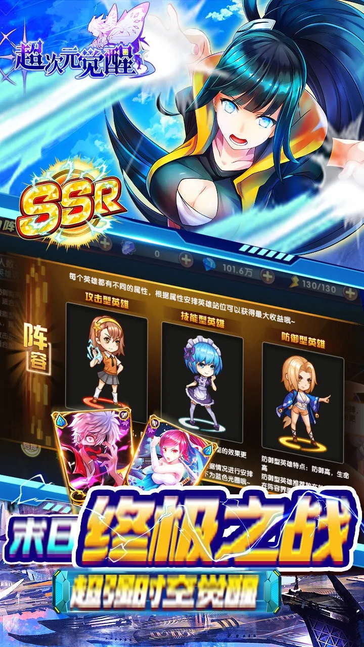 《超次元觉醒(送SSR百抽)》年度巨献,打破次元壁,集结各路英雄,打造属于你自己的乱斗元宇宙!游戏中拥有英雄培养、装备培养、天赋、神兽等,还有竞技场、社团战、世界Boss、组队战等社交性玩法,更有众多经典英雄任你挑选!超值福利终身享,0氪也能锤破天!