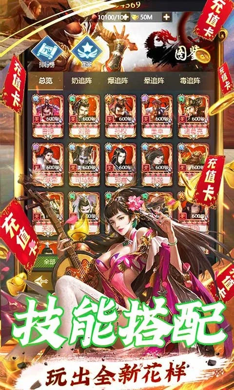 《三国战天下》是一款以三国题材背景,轻松又有策略的放置类卡牌游戏。在游戏中,玩家可以收集各种三国名将,提升他们的等级和阶数,合理搭配出自己所需的队伍,并利用奶追阵、暴追阵、晕追阵、毒追阵这类武将技能设定搭配,尝试多种阵容组合挑战多样副本。《三国战天下》独特的放置玩法,不会给玩家太多负担,所有武将入手难度不高,纵向提升武将自身实力,即可战斗飙升玩转各种副本征战,怒斩各类BOSS。