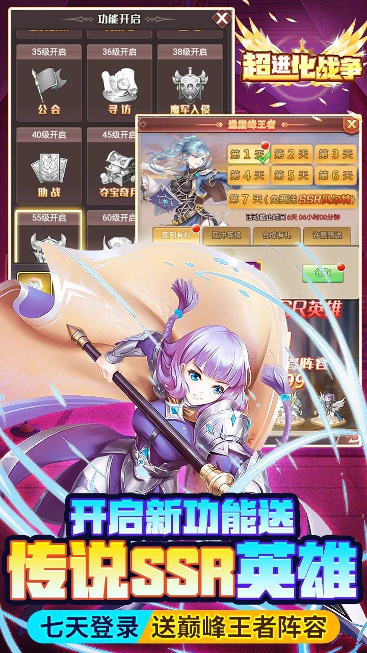 遥远的勇者大陆正在受到暗黑魔龙的威胁,王国已岌岌可危,需要召唤更多的勇士挺身而出打败暗黑魔龙,守卫王国的安宁。 勇士们还将游历火纹世界的各个角落,火山、沙漠、海滩、绿地、冰雪等不同的大陆板块等着大家去尽情探索,在美妙多变的风景下展开热血澎湃的战斗。 《超进化战争》是一款集挂机、卡牌于一体的游戏。别出心裁的战棋挂机玩...