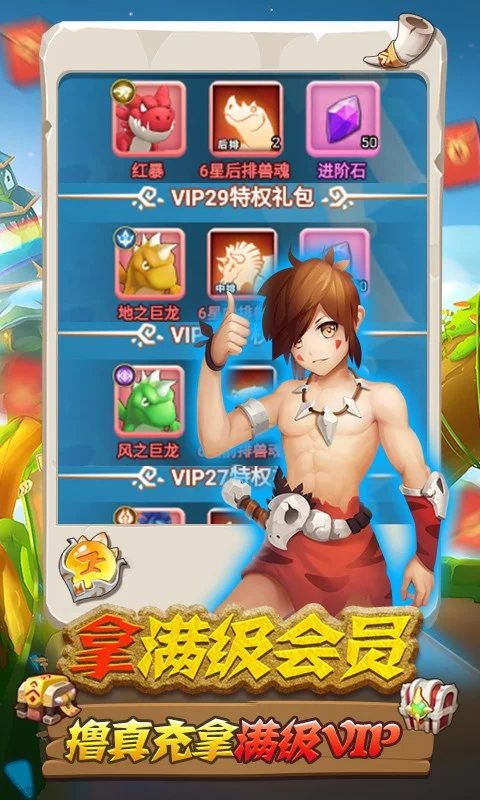 《萌点部落-送GM30万充》是一款石器时代为背景的放置卡牌手游。上线直接免费点充可以拿所有累充奖励,还有首充、VIP等海量奖励全部靠手速拿!玩家可以培育形态各异的史前宠物,增强装备、提升属性培养角色。战斗采用卡通画风的对战。更加入各种多元化的玩法系统,快来领取你的史前宠物吧!