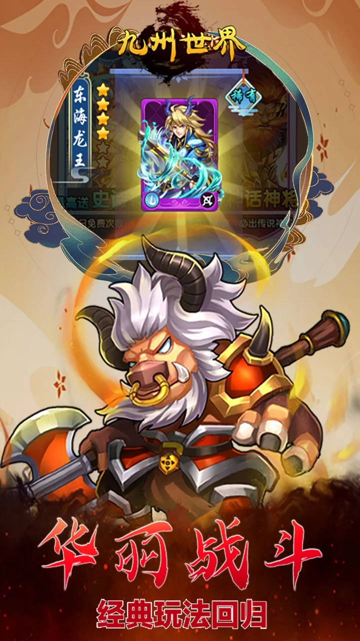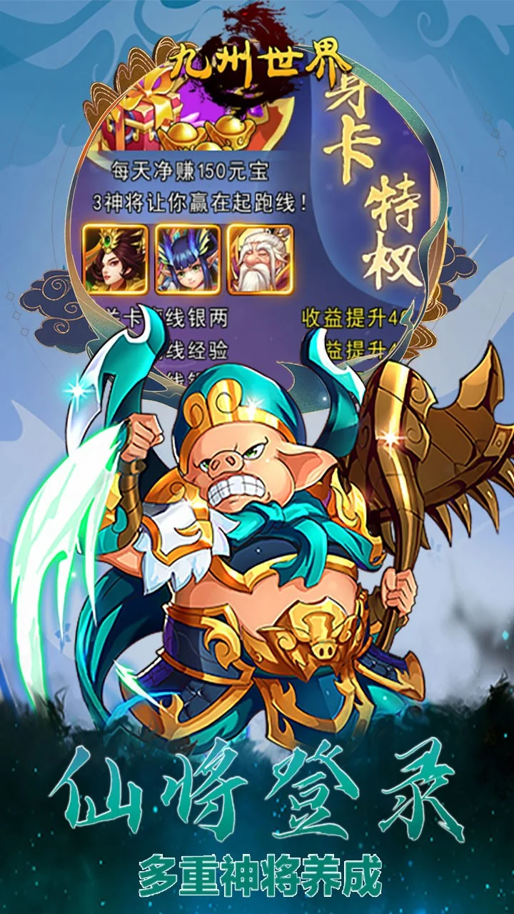《九州世界(创角自选神将)》是一款经典的西游题材卡牌,游戏中有五大阵营,丰富的人物羁绊组合,一样的卡牌不一样的的组合玩法。战斗与休闲挂机的养成体验,玩家不仅能体验到传统卡牌游戏中的策略和养成元素,又能通过挂机自动PK来实现角色成长。