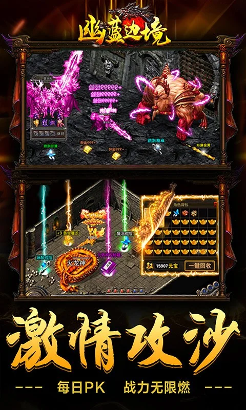 幽蓝边境(充值满屏爆)是一款集打宝、pk于一体的传奇手游,所有装备均可掉落,爆率全部开放,装备保值回收!真正良心的版本,无套路无暗坑稳定开放,只要有时间就可玩转本服所有大陆所有副本!
