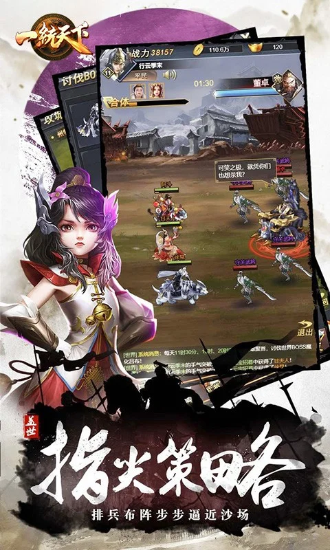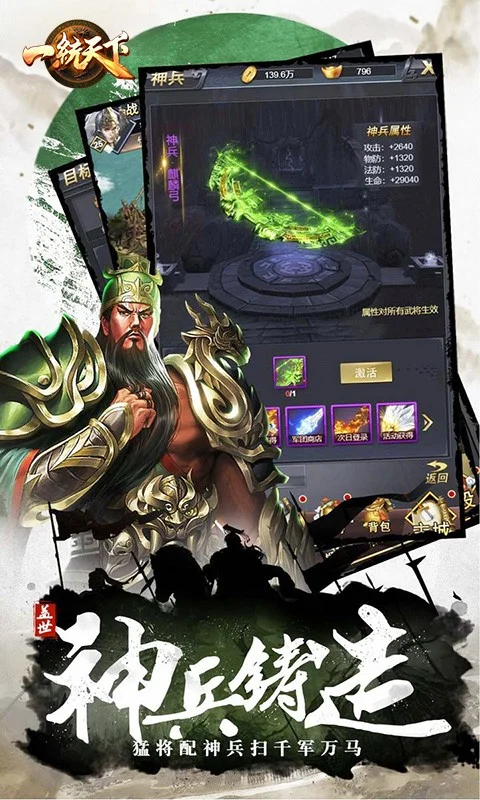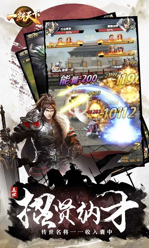 《一统天下(无神将不三国)》是一款以历史英雄人物为题材的卡牌游戏。游戏不仅延续传统卡牌的经典,而且融入了攻城掠地、千人竞技、万人跨服团战等新奇独特的玩法,酣畅淋漓的战斗表现,将带你领略前所未有的激战盛会。在全新主宰的三国地图上冒险,更有三国超级猛将助阵,玩家可以选定自己喜爱的武将出战,各种精美的坐骑应有尽有,赶紧来调兵遣将指挥千军万马作战吧!
