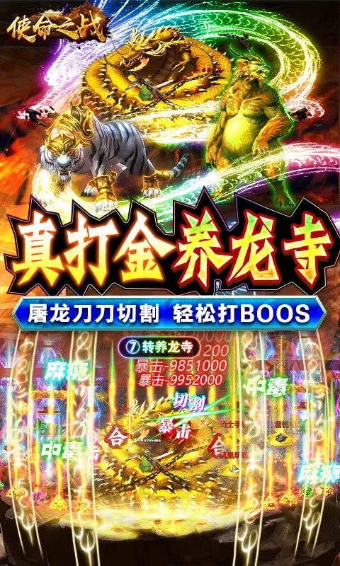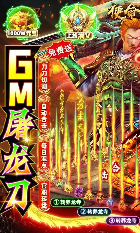 使命之战(GM刀养龙寺)是一款承载了无数记忆的三角色传奇手游!游戏内超大型PVP热血攻占沙巴克,弑虐龙谷boos,夺取最深处的宝藏,原汁原味,步步都是回忆。在这装备遍地都是,在这BOOS杀戮不断,在这可以与世无争的泡点,体验杀戮间停下的悠闲,在这征战不断,在这荣耀加身,神装环绕,众神膜拜,打造最极致热血的体验。全新养龙寺,超强合击系统,开启爽快激斗新感觉,全身神装,再现当年沙巴克攻城盛世。