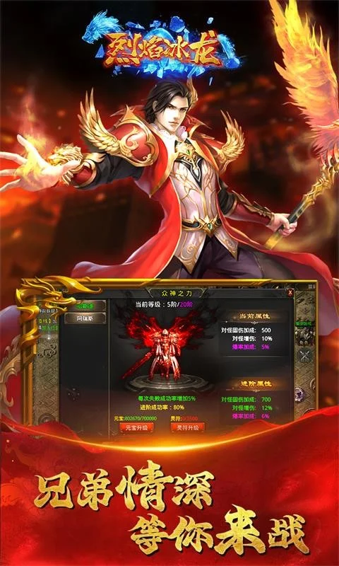 在这款游戏当中,带来的是无尽的热血,和激情的挥洒意境,遍地的浴血奋战奇迹,带领我们执手高级锻造的武器装备,守护我们的专属荣耀传奇。众多兄弟的激情相聚,与我们开启热血的同行竞技之旅,带领我们体验激情的万人攻占情景,享受着无比热血的刺激战略,铸就一场绝对的巅峰热血赛场回忆。 1、兄弟相聚,随时作战,野外对战,单挑团战,—呼百应。 2、辉煌时装,霸气的外装,炫酷的坐骑打造属于你的辉煌。 3、打造神兵利器,合成高级羽翼,提升境界等级,提升坐骑等级。 4、装备全靠打,百倍爆率掉装,轻松在线回收装备,战力狂升不是梦。 5、打本刷Boose,装备掉落随便捡,拾荒也能发大财