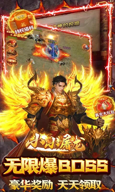 全新地图、全新福利、《小小屠龙(送800真充特权月卡)》!刀刀切割无视防御!全新特权!应有尽有!上线送特权月卡!无限每日送充值!绝版时装、海量元宝、极品装备材料全部免费无限送!福利全新升级!千倍投资返还!永久年卡超值豪礼领不停!快唤回曾经的兄弟们一起战斗吧!荣耀归来!再创传奇!小小屠龙!