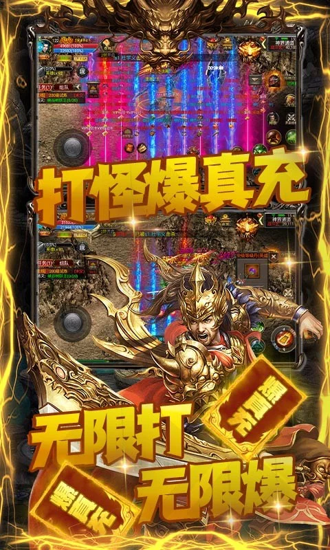 大汉龙腾(无限爆真充)正版传奇手游,兄弟携手再战经典传奇,攻沙称王,激情对战,抢夺BOSS,血战副本,上线即送满级VIP,buff特权带你飞,十倍爆率元宝拿到你手软,这才是真正的散人天堂,欢迎兄弟们王者归来!