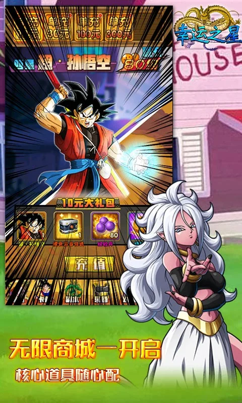 幸运之星(GM无限代币)全球超人气热血漫画龙珠题材卡牌游戏,独创的新颖剧情,龙珠系列高人气人物大集结,与你一起并肩战斗,为你打造热血的龙珠宇宙。游戏中不仅含有精致的人物形象,爆燃的战斗风格,还有武道大会、觉醒变身等诸多玩法,让你体验全新超爽、超燃的龙珠世界。