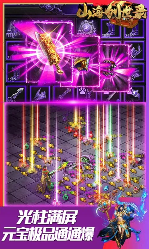 《山海创世录-狂暴单职业》是一款专门针对BT市场修改的传奇手游;上线赠送:VIP12,GM剑*1,GM甲*1,648充值卡*1,1000元红包*1;顶级会员特权,可免费获取;爆率拉满,刀刀切割,boss好打,满屏光柱,元宝好爆;特色单职业,战亦是道法,多技能释放,PK更激情;神装boss皆可爆,装备永久回收,不花钱一样玩;这是散人玩家的好选择,这是你绝对没玩过的版本;