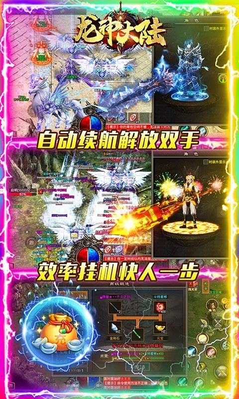 【龙神大陆(超速无限刀)】是一款超攻速迷失版本的复古传奇手游,致敬经典,旨在创新。本服玩法上手简单并且货币超好打,七个大陆不用担心无怪可刷,游戏内带有自动随机传送系统、自动续航系统为大家的挂机爆装提供舒适体验。上线每天都送充值卷及翻身令牌,福利丰厚装备好打,相信一定会带给你超爽的至尊级传奇体验。