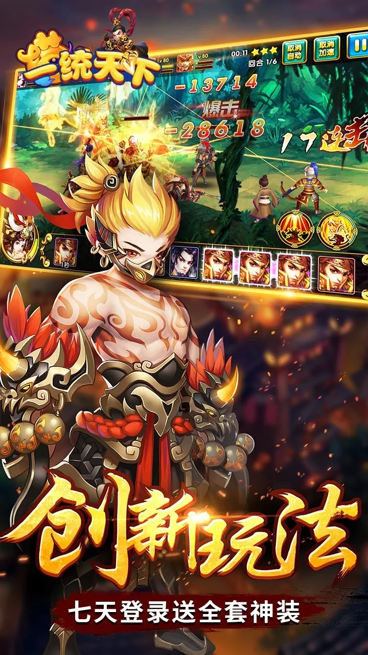 《一统天下》是一款极致动作战斗体验的三国3D动作卡牌手游。这款游戏摆脱了传统卡牌模式的束缚,将卡牌与动作完美结合,手动操作实时对战。以三国原著为蓝本,力图还原一个别样的三国。同时,也将体验到三国英雄的炫酷大招,一切秒杀、PK瞬息之间的胜负变换于你的股掌之中,让你真正融身于风云三国。
