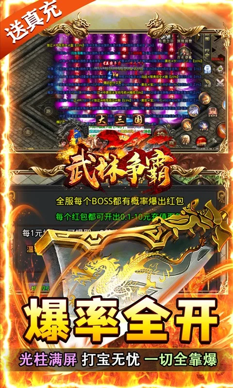 武林争霸(三国魂环超变),超变版本三国题材,开局就送新手福利!超高爆率!超强宠物!助你砍遍全图!神装合成,魂环附身,宠物追随,红包回收,全新地图,三国特色剧情玩法,切割神器,活动boss无限刷!准点攻沙,等你来战!全新三国版本来袭!还在等什么,快来加入吧!