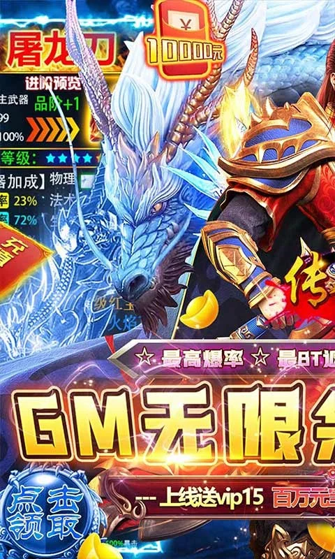 传奇岁月(GM余额直充)是款四职业动作传奇手游!上线送vip15,游戏内含全新的GM商城系列玩法,GM余额宝功能可通过游戏行为获取余额进度,可在游戏内免费提取!全新终身返利福利,终身每日享受真充福利!更有全新GM指令可以无限获得资源!在线无限抽真充卡,让你抽到爽!丰富的跨服玩法让你体验无限的激情!快来邀请你的好友一起来场快乐的传奇之旅吧!