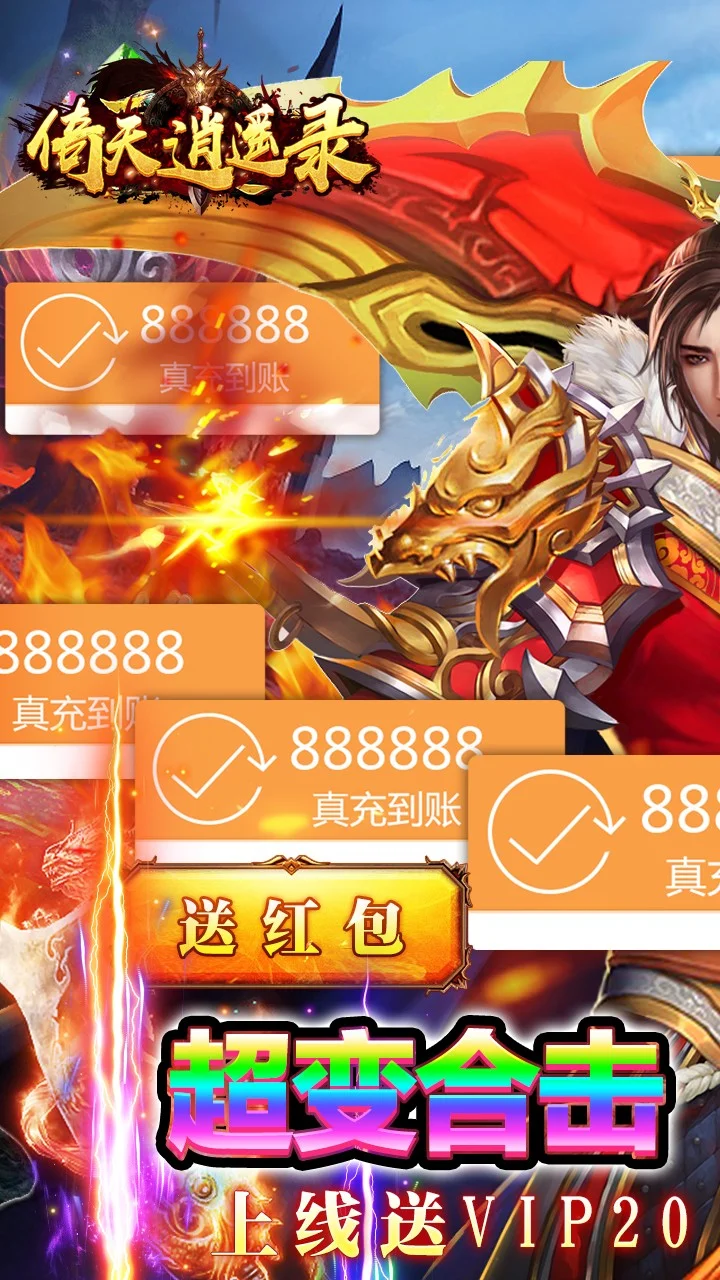 这是一款复刻电脑端传奇经典玩法,加入深度改版的传奇题材手游。登陆即送VIP7,连等7天领5000次寻宝最高出终极,首充礼包免费送,领全职业通用黄金裁决、满阶天狼,升级可领万元充值卡,每日抢5W元宝红包,天天登陆领真充领时装,三职业修正平衡,高智能挂机刷怪,小怪掉终极装备,全地图开服红名PK,没周一三五8点激情攻沙,不充值也能爽玩一整年。