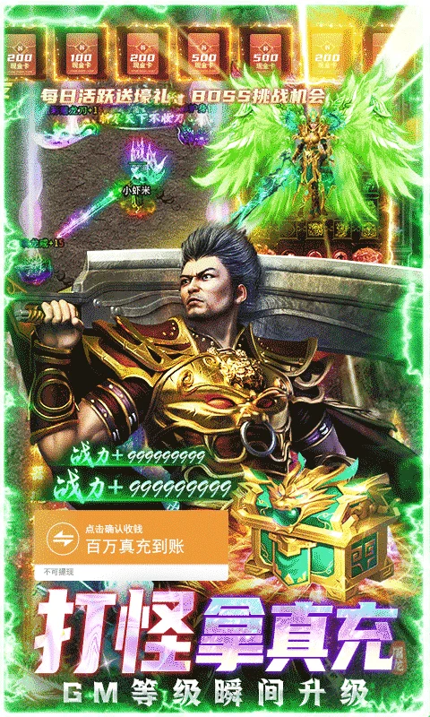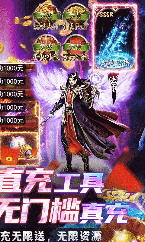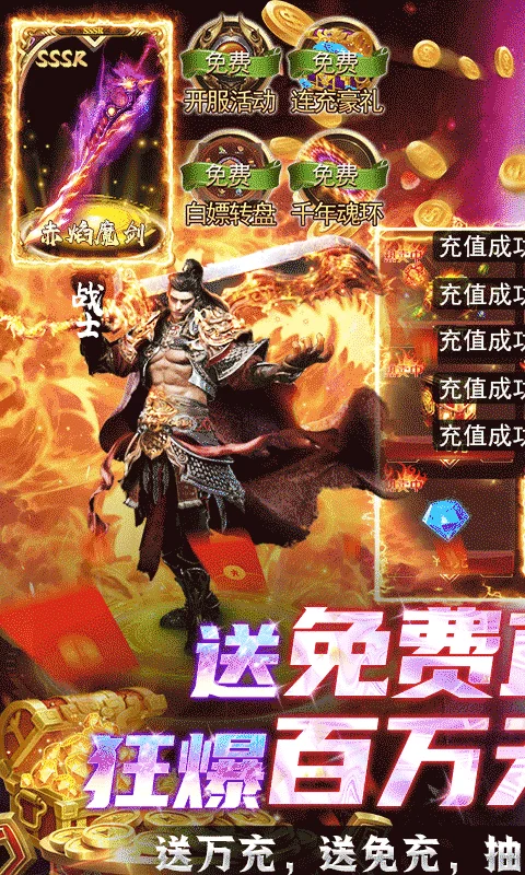 《诸世王者》开局送GM1,千元魂环,百万元宝,千万绑金,千元真充。0元免GM,百万真充大礼,全民无限免费送,超爆超爽三职业修正平衡版本,爆率大提升享无限打金打BOSS无敌爽,小怪BOSS均掉落真充与终极装备魂环,0氪也能爽玩一整年,PK打宝战沙城,热血豪杰闯天下,真·福利、真·传奇手游!