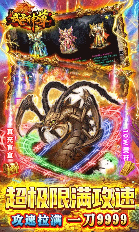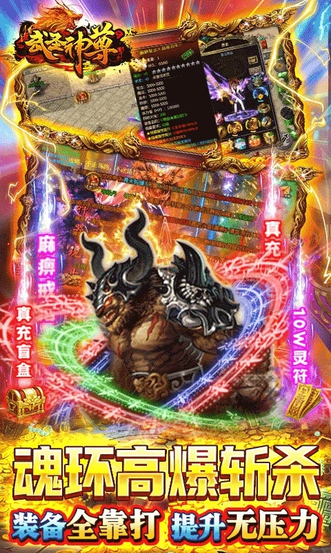 《武圣神尊》上线送10W灵符,100W元宝,霸王魂环特权,创号免费领取,炫酷魂环外显,上线自带经验泡点,一秒999刀,无限攻速,千倍爆率,所有装备,左右特殊装备以及升级材料游戏内全部可爆,极品吸血,刀刀暴击,特色狂暴系统上线就送,刀刀切割满屏爆光柱,装备全靠打,小怪爆终极!!!