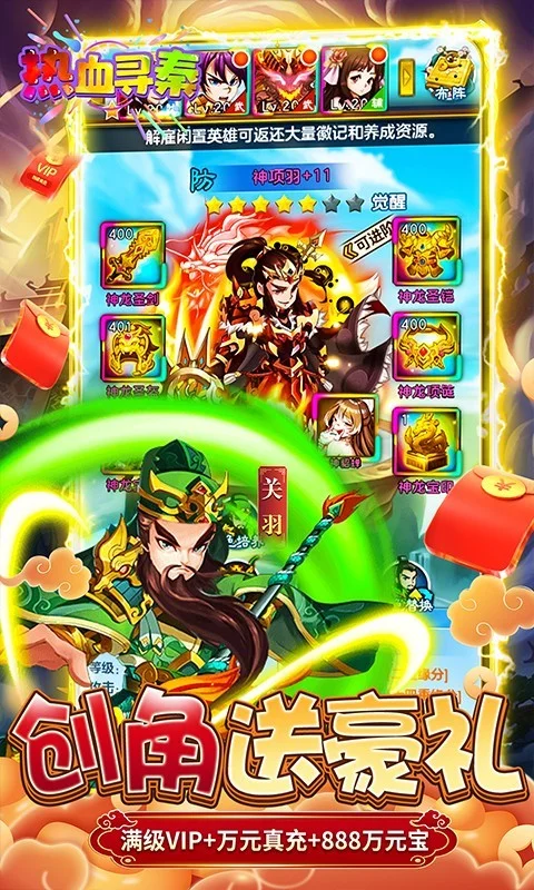 《热血寻秦(GM养龙刷充)》是一款以架空历史世界为背景的竖版卡牌游戏。秦国灭亡后大秦龙脉也随之破碎,化为“秦晶”散落各地,强大的能量造成时空扭曲,楚汉、三国、隋唐等时代的英雄集聚一堂。你作为被选中的人,决心投靠一方势力,组建自己的军团,寻找“秦晶”,恢复龙脉,获得强大力量,一统乱世。