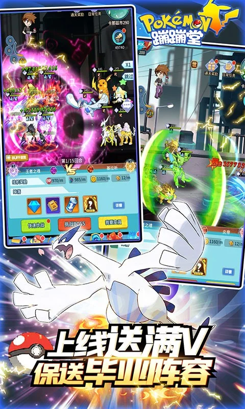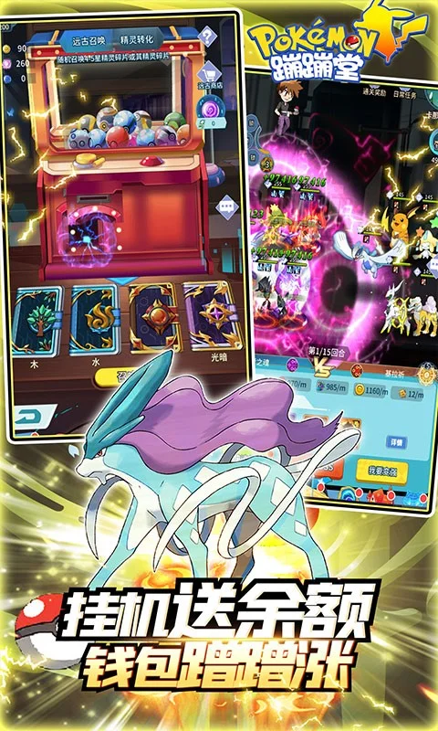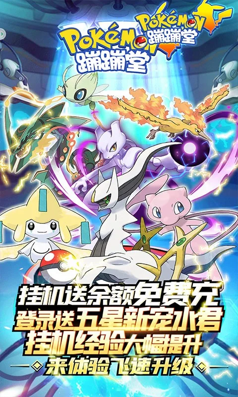 《蹦蹦堂》一款经典卡通风格冒险手游。再现经典,多张地图,多样玩法,联盟大会、秘境探险,带着你的小精灵一起去游戏中展开探险,成为训宠大师。丰厚福利,传说神宠-阿尔宙斯,登陆就送。点击进入VIP界面,更可领取所有五星神宠,阿尔宙斯、奈克洛兹玛、超梦等五星神宠全部免费送。版本大幅提升挂机获取角色经验的速度,让玩家可以飞速升级,尽快体验游戏更为完全的内容,通过游戏内挂机,闯关等多种玩法可免费获取充值额度直接在游戏内进行钻石充值以及礼包购买等行为,实现真免费,真直充!