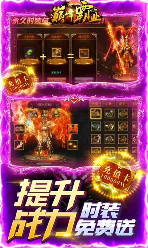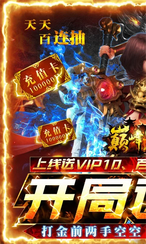 开局送648充值卡,升级领2万元充值卡使用增加对应的元宝,开局在线10分钟送首充,三年执业修正平衡,小怪掉终极装备,不充值也能爽玩一整年,真·福利手游!