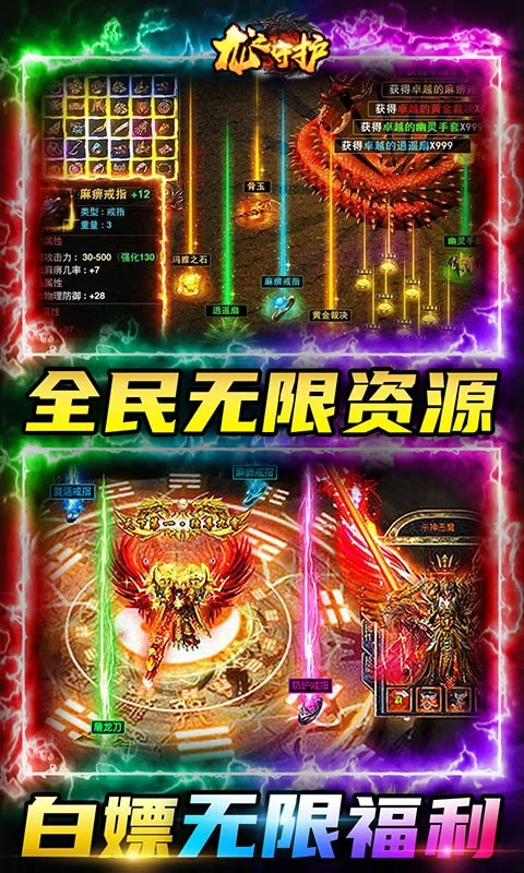 龙之守护(斗罗无限版)是一款1.76为底板的特色魂环版,独家无限资源免费领! 游戏内所有地图全部无限制进入,特权要求﹖转生要求﹖通通不存在!!绝对自由,市场独一份!! 超爽无限福利:无限元宝、无限灵符、无限充值、无限宝石,奖励领到手抽筋!! 游戏内更有独创巡航系统,自动挂机解放双手!!终极装备打怪爆不停,无任何暗坑!!