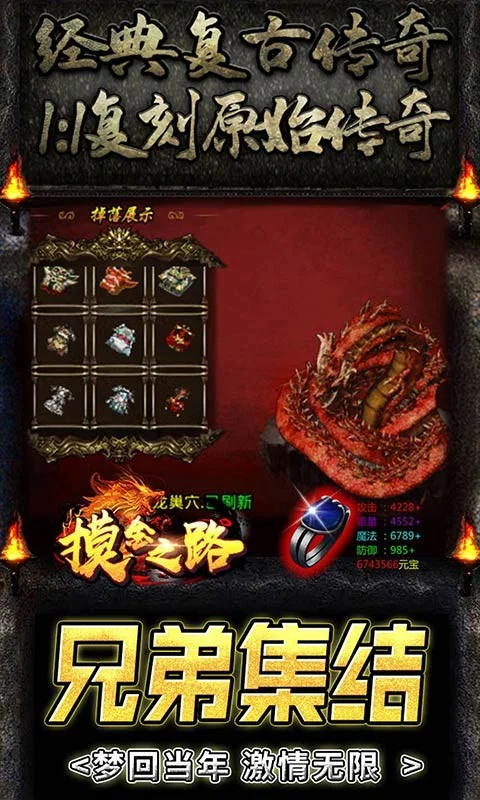 摸金之路(无限爽爆充)是一款复古三职业打金传奇,曾经的传奇造就了一代神话,因为传奇承载了一代人的记忆,承载了他们的情感,满屏刷怪,刀刀暴击,疯狂打宝,飞速升级, 百人沙城,千人同屏等等,同时在游戏画风上秉承了经典的写实风格,沙城的古朴而庄重、土城苍凉如许、地下世界或阴森恐怖或灼热难耐或寒冷刺骨,一切的一切都畅快淋漓,仿佛让人回到了那个充满情怀的时代,玩家更可以在游戏中结交各路好友,共谋传奇霸业!