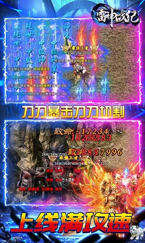 《雷神战纪(高爆满攻速)》是一款高爆率超变传奇动作手游,游戏继承了传奇的核心玩法,上线直接满攻速,超高爆率刀刀爆。装备光柱炫酷霸气,外观造型灵动前卫,超爽百倍爆率,不禁让人眼前一亮。征战玛法,即刻启程,名扬沙城,就等你来!