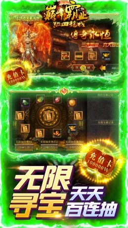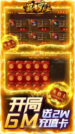 开局送GM,升级领2万元充值卡使用增加对应的元宝,天天百连抽,无限抽充值卡,开局在线10分钟送首充,三年执业修正平衡,小怪掉终极装备,不充值也能爽玩一整年,真·福利手游!