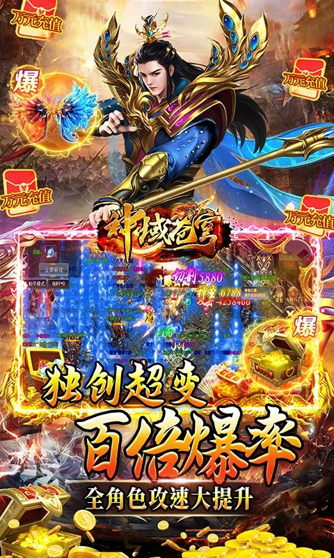 全新地图、全新福利、全新专属武神诀系统,刀刀切割无视防御!当托破甲斗笠百倍打金、5000元充值、专属当托号!全图爆真实充值,开局爆满背包红包+元宝,更有惊喜超级回馈礼包,劲爆打金版本,全角色攻速大提升,开局开砍,暴爽打金!