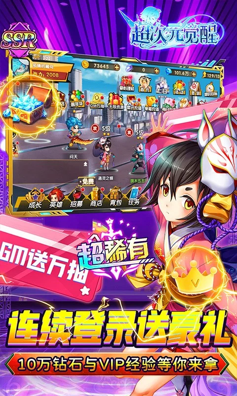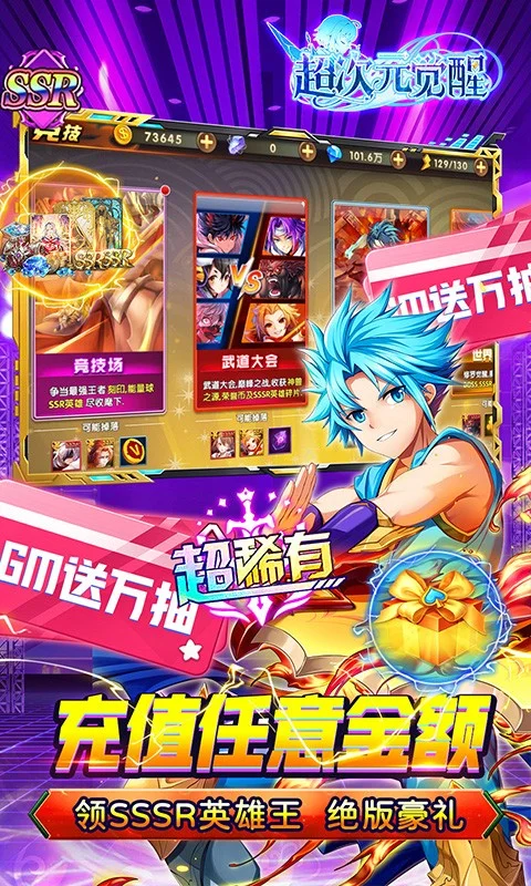《超次元觉醒》是一款二次元动漫卡通画风的日式幻想题材动作卡牌手游,游戏采用二次元画风打造,精美细腻的游戏画面,唯美的立绘,简单易玩的游戏操作,各种萌系英雄角色可供玩家收集,游戏背景以现实的人类突然觉醒拥有了“超能力”,从而让整个世界陷入了混沌之中,这时应运而生的主角在此诞生,玩家需要去召集不能性能职业的英雄和神兽,培养它们的战斗力、天赋,去将恶意造成世界混乱的恶势力和魔头抗争,恢复原有世界的和平。游戏中不仅拥有英雄培养、装备培养、天赋、神兽等,还有竞技场、社团战、世界Boss、组队战等社交性玩法。全新的超能力战斗竞技设定,特色英雄培养玩法,萌动可爱画面风格体验,轻松组队享受竞技内容,玩法模式多种多样,实时对决PK,史诗大战一触即发,在这开启你的奇幻之旅。