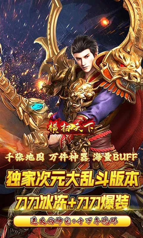 横扫天下(超变打金大乱斗)独家超变打金版本,上线免费赠送高防反伤宠物、送千万年魂环、神器四件套! 一大陆一特色:复古、三国、水浒、大航海、现代、机甲、混沌,超多特色装备,特色时装,等你探索! 免费送顶赞,做任务送会员,零氪一样玩的爽~装备全靠打,材料全靠爆,超多福利活动,年度最良心福利大作!