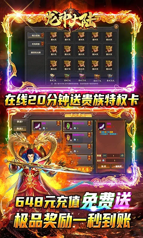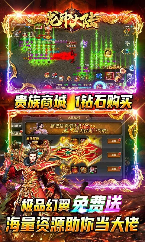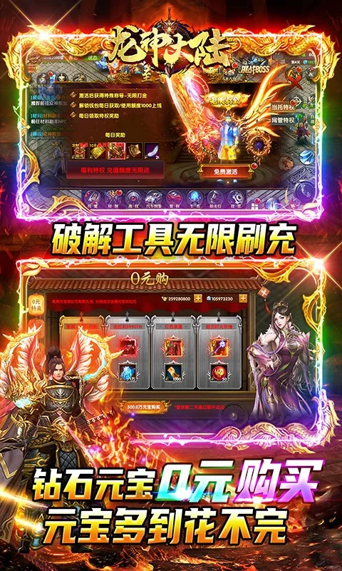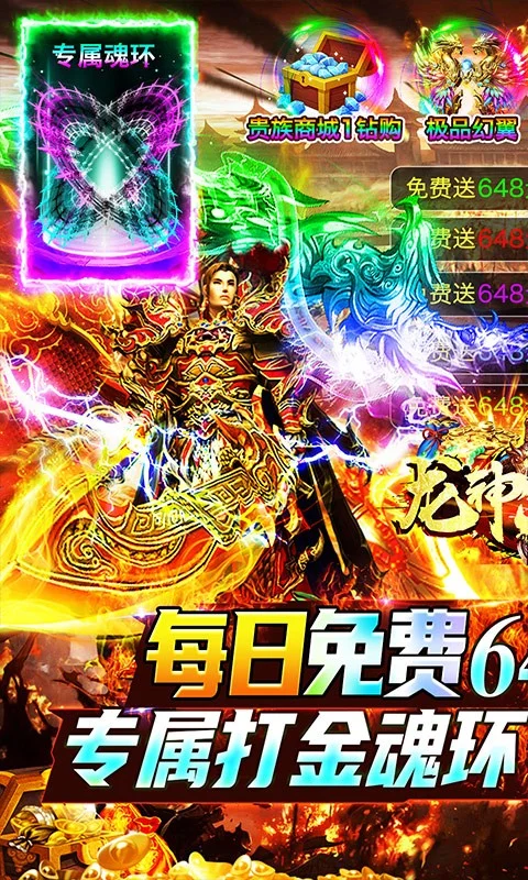 开局领VIP20,VIP礼包可获3000万元宝、更有极品幻翼、炫酷时装、绝版称号、专属魂环;每日在线免费送648元充值!0元购返还所有钻石、元宝!破解工具,额度激活直购礼包和首充。全新魂环系统上线,兄弟快上线,真热血PK传奇邀你来战!