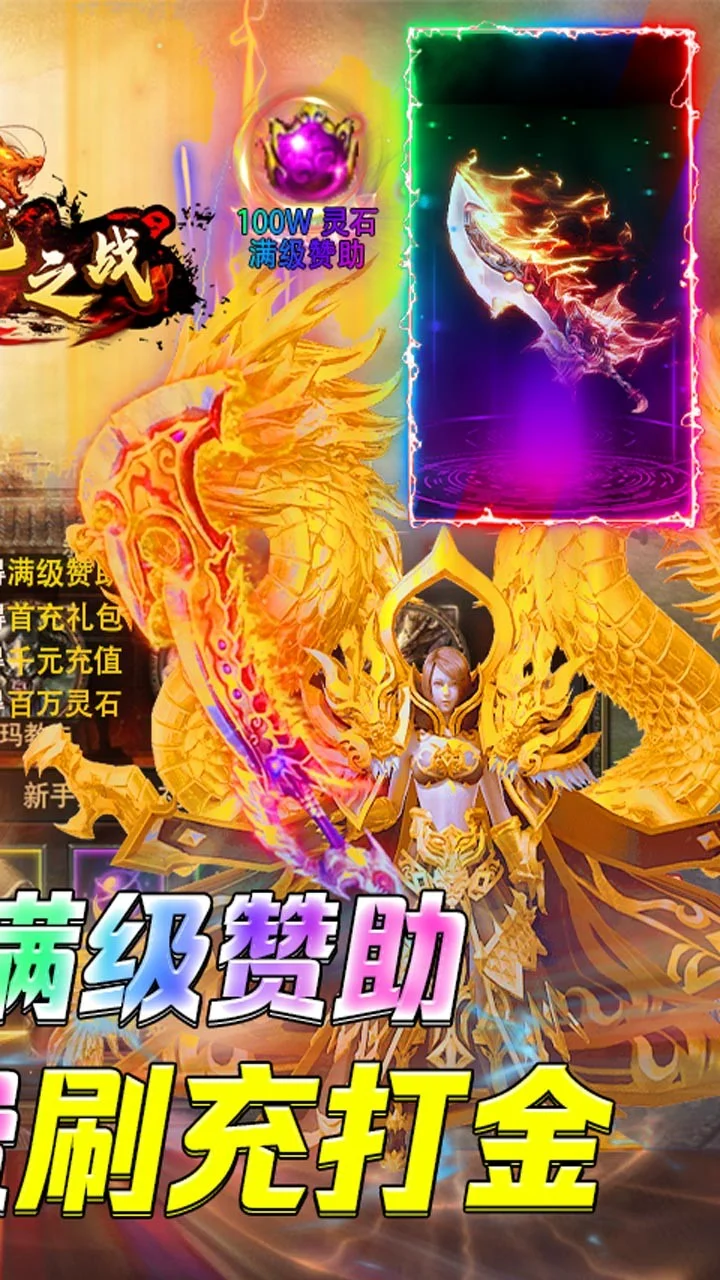 送满级赞助,首充证明、100W灵石、1000元充值点,免费打金实物兑换