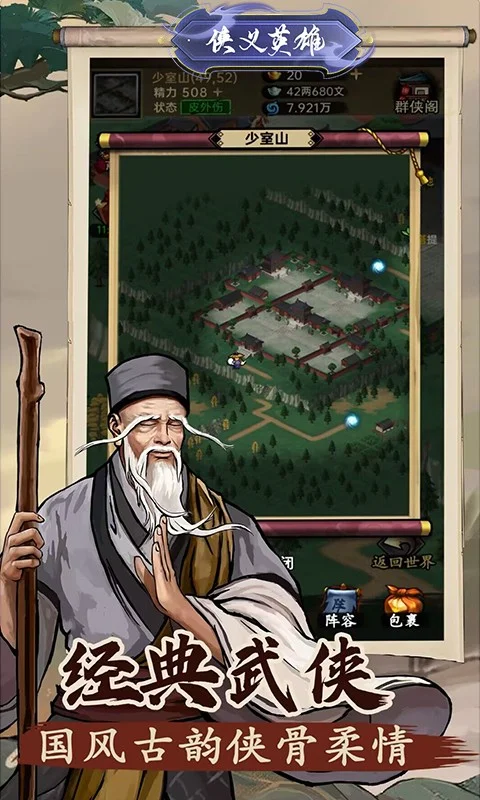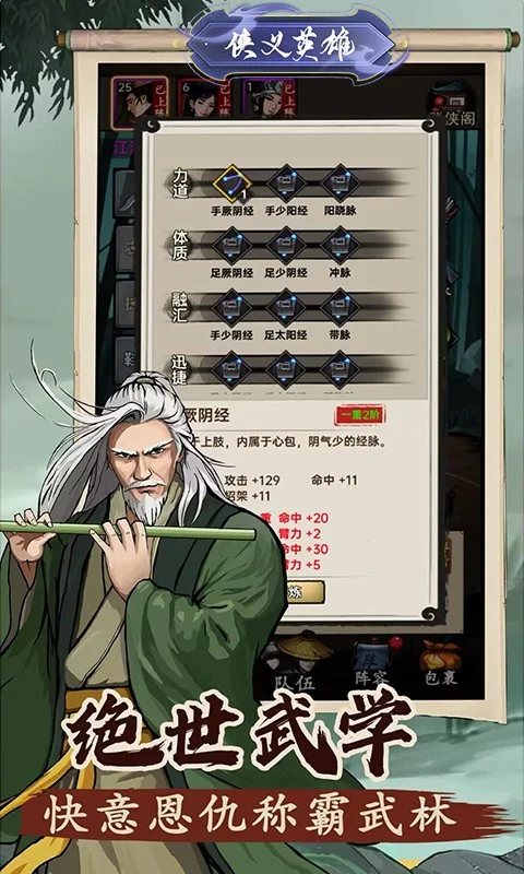 这是一款武侠风格的卡牌回合手游。 “风云激壮志,枯槁惊常伦。沉寂的武林暗潮涌动,风云再起。江湖儿女就要获得潇洒狂放,纵酒狂歌,快意恩仇!武功要出神入化,出招要气吞山河,飞沙走石,日贯长虹!纵马大漠孤烟,对饮长河落日!纵使刀光剑影,虽千万人吾往矣!那究竞谁会在武林中称霸,玩家上线可领取全部五星侠客,500寻侠券,每日登录还送100寻侠券,抽卡抽 不停,阵容随心搭配,助力玩家称霸武林江湖;一元解锁金手指,各种特权破解,挂机还有大量充值卡碎片,真实充值刷不停,0氛也能玩到爽;快来江湖中快意恩仇吧~