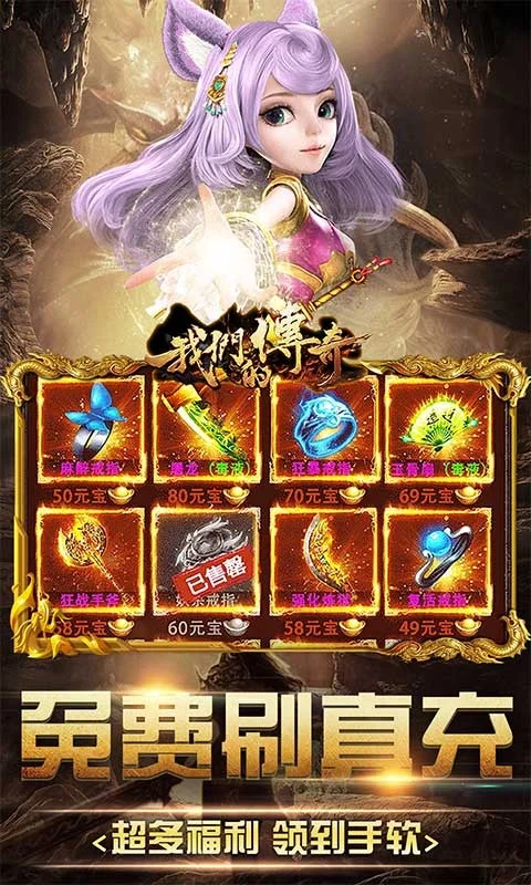 我们的传奇(次元女神大乱斗)是一款全新的Q版传奇手游,清新简洁的画面,个性演绎,致力于打造出一个与众不同的传奇,创角送自动回收、范围拾取、刀刀绿毒,极限满攻速,佛系护肝,不肝不氪!打怪免费领取真充,激活游戏内充值活动,还有几率直接爆出充值红包,真正的一款良心好服!