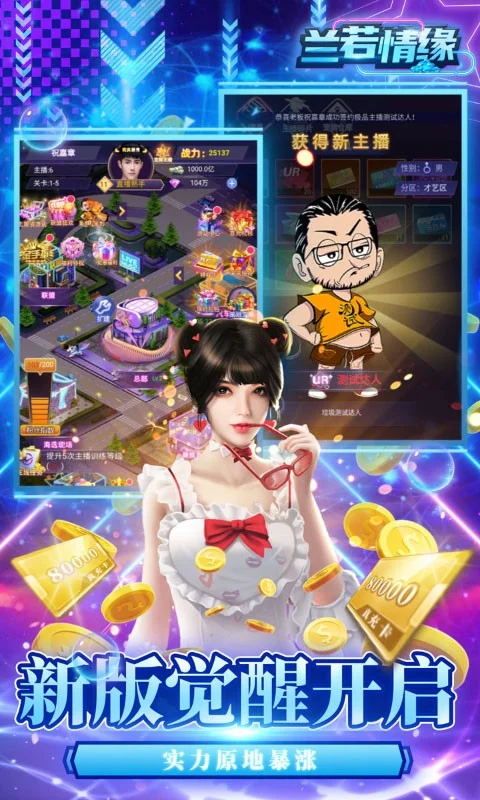 《兰若情缘(现金点无限撸直充)》终极版本首发上线!!这是一款网络主播题材的养成卡牌游戏,作为一个直播行业的新星天才,我们将于众多知名主播、巨星相聚,并开创属于我们自己的娱乐帝国;上线送GM15,送幻彩UR自选,送兰博基尼毒药,海量现金+福利。游戏100%纯正真充卡,真充卡还激活部分线下活动,体验土豪榜一的快乐。游戏内现金点可代替充值点进行购买游戏礼包,福利多多0氪直接起飞,咱拒绝各种文字陷阱,暴揍策划嫖资源,每日SSR拿不停,新版本觉醒功能让你实力大增,一起来体验吧,为你心中的那个他/她助力打CALL。