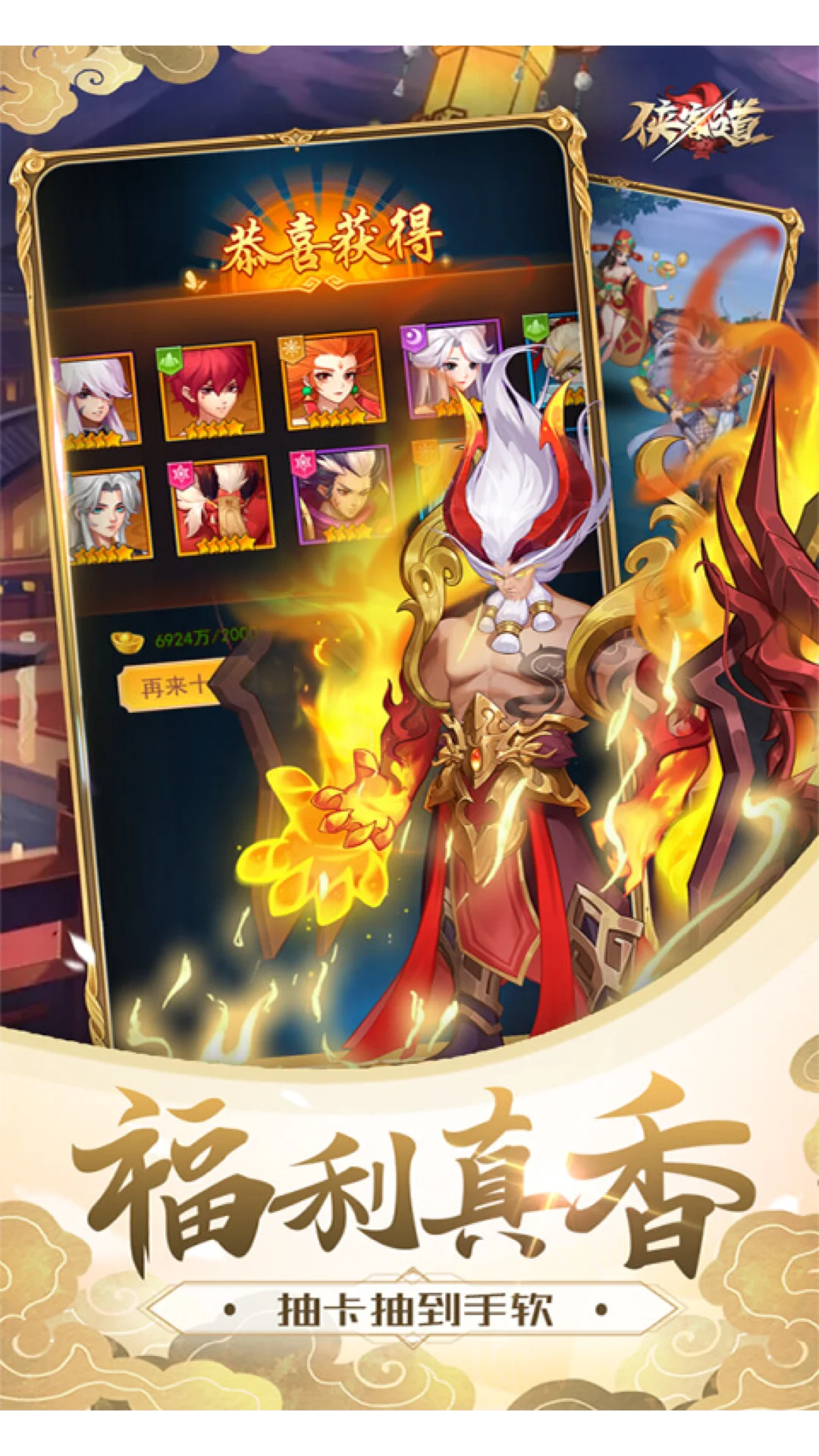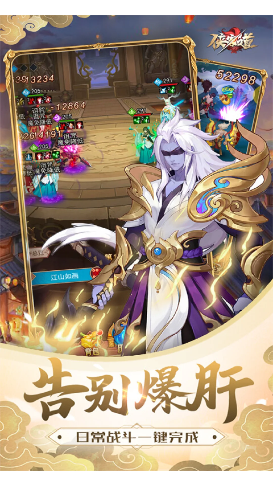 《侠客道》是⼀款⼆次元放置卡牌类⼿游。游戏采⽤战前布阵的回合制战⽃模式。在游戏中,玩家可以通过收集和培养各种⽿熟能详的中国古代侠客以及神话英雄阵容来进⾏冒险; 游戏集多种PVE、PVP玩法和特⾊养成线,玩家运⽤⾃⼰的策略制霸游戏世界,为⾃⼰的国之⼤义⾛不同侠客道路。