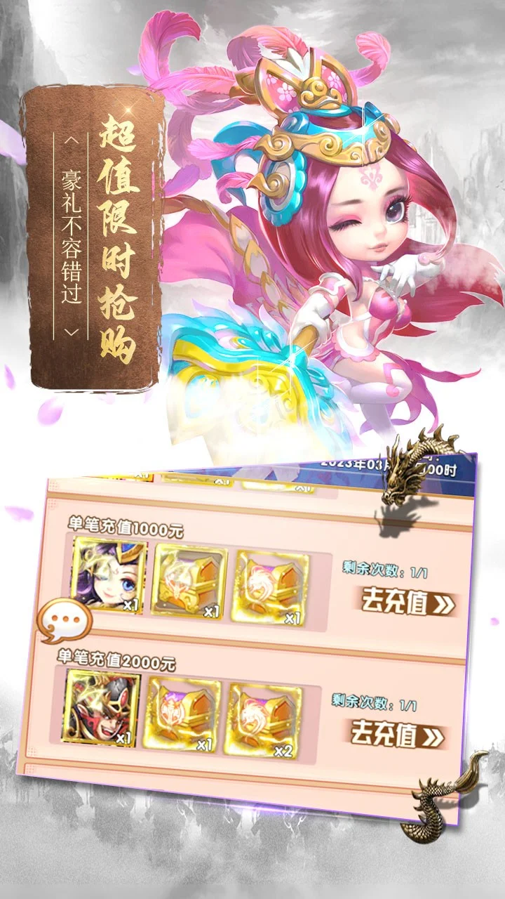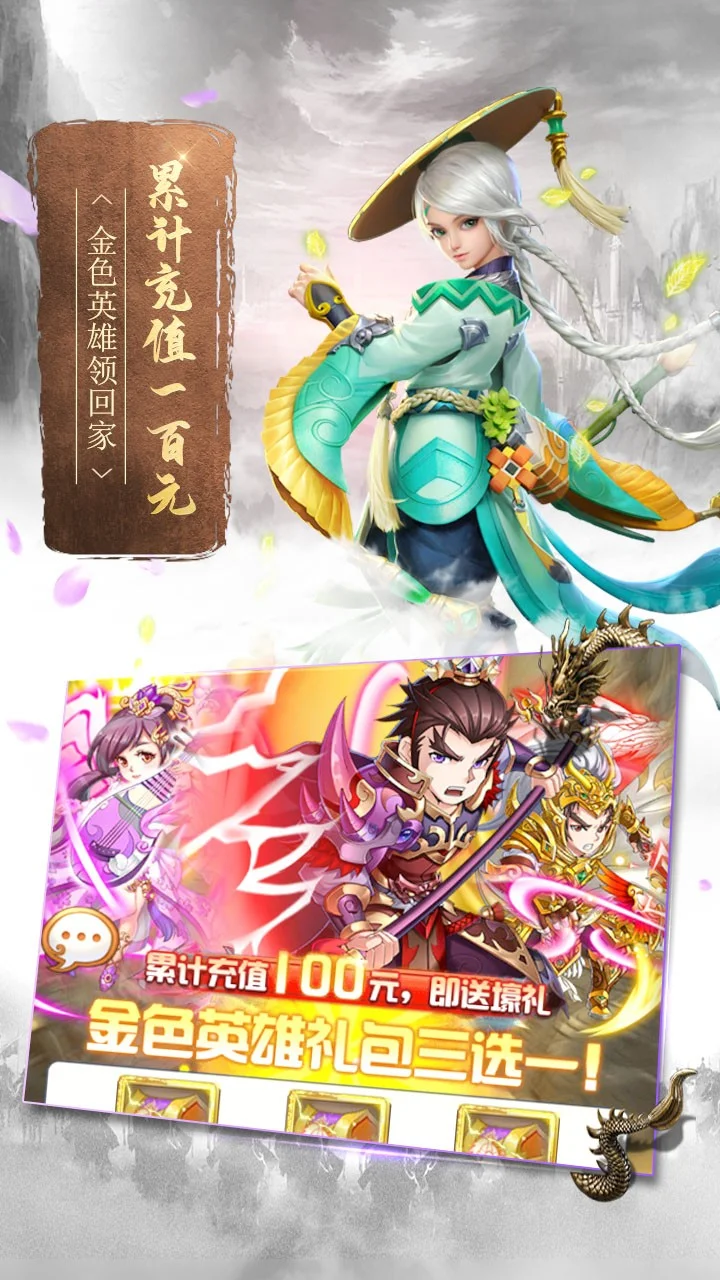 是一款卡牌类手游,画面精美,技能炫酷,培养您的武将,群雄乱世争霸,挂机闯天下,王者路上,唯我独尊。游戏福利不断,上线送满V(VIP15)、888888元宝、888万金币、超级福利大礼,激情无限,超爽玩法等你来体验!!!