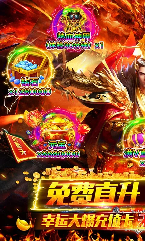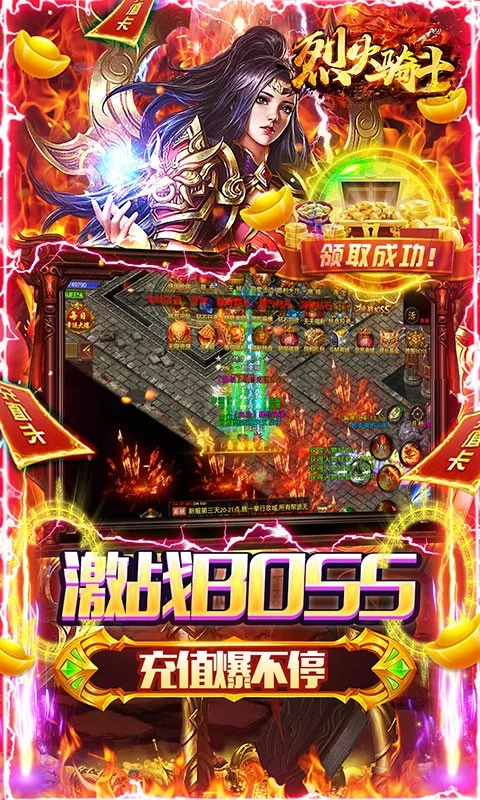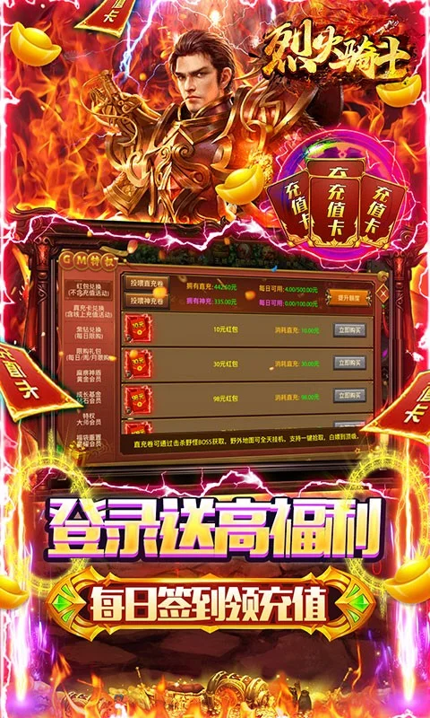 《烈火骑士》是一款全新的单职业动作冒险类传奇游戏!主要以升级、爆装备、攻沙、跨服远征为核心,丰富多样的玩法,华丽炫酷的时装特效,高清画质极致视觉盛宴。击杀BOSS可触发超级幸运红包大爆充值卡,免费直升满级VIP,闯关专属地图爆守护神装。还有每日跨服屠魔免费抽神壕套装!超高怪物爆率,元宝神器战装爆满屏,让你轻松刷怪,惊喜不断。怪物攻城、阵营战、沙城争霸、跨服远征、福利转盘、幸运翻牌等线上活动精彩不断。更有冠名专属、定制称号助你叱咤风云,威名远扬!战宠神威,唯吾独尊!热血狂爆,一战封神!