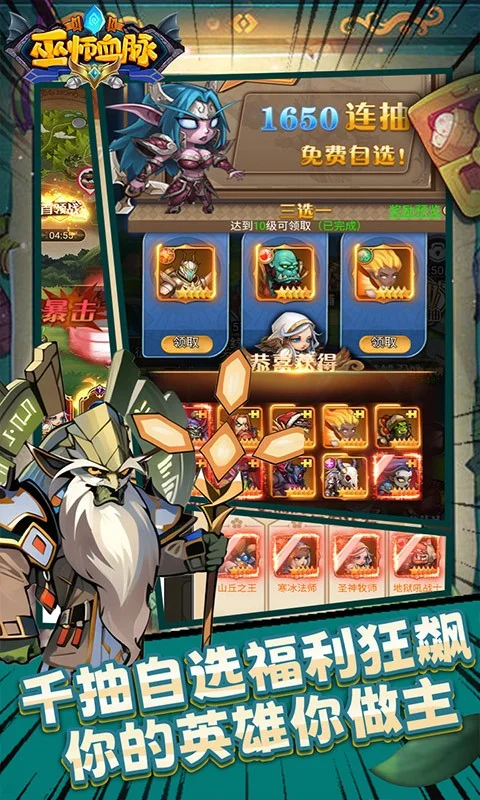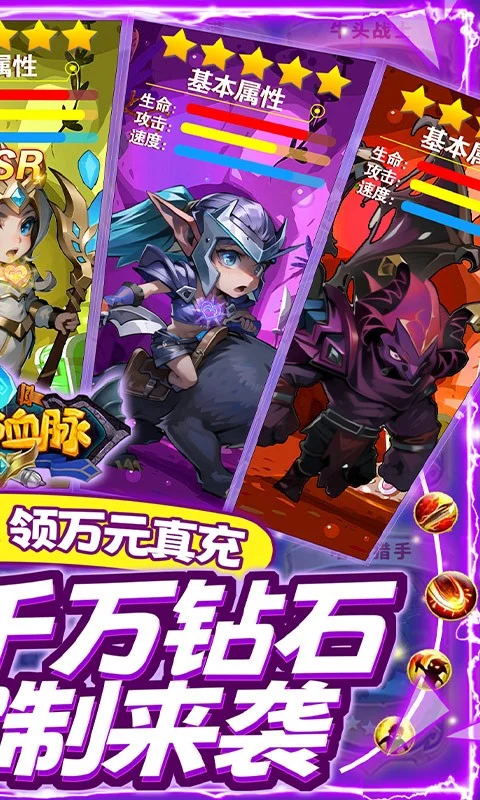 经典魔幻手游掌上演绎!《巫师血脉》上线就送万元充值,连登送千万钻石,在这片魔法大陆中,我们拥有人族、兽人族、精灵族、亡灵族、中立族、五大阵营,阵营之间搭配组合,相生相克,维系着大陆的平衡。直到某一天...... 暗黑降临,魔物肆虐,大陆的平衡被打破。 身处大陆的勇士们,为了家园的安全,你需要集齐五大阵营英雄,组建出最强卡组对抗敌人! 事不宜迟!快来率领你麾下的英雄清扫魔物。